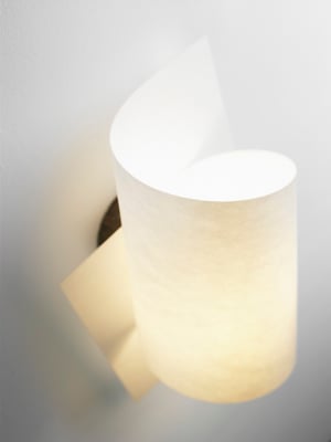 シェードの巻き方を変えることによって、何通りかのデザインを楽しめるユニークなデザイン。ハンドペーパーのような風合いを持つシェードから放たれる柔らかい光の陰影が美しい照明です。