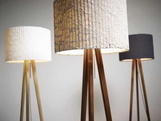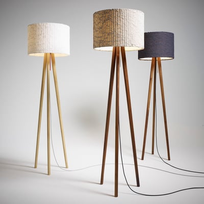 3本脚がシンプルでモダンなデザインのフロアスタンド。広めのお部屋に映える、大きめサイズです。プリーツ加工された味わいのある布製シェードは、光の強さや角度によってさまざまな美しい表情を見せてくれます。お部屋のインテリアに合わせて材質とシェードをお選び下さい。